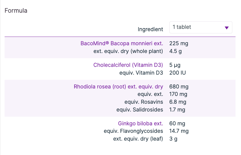 - A blend of herbal ingredients BacoMind® bacopa, rhodiola, and ginkgo