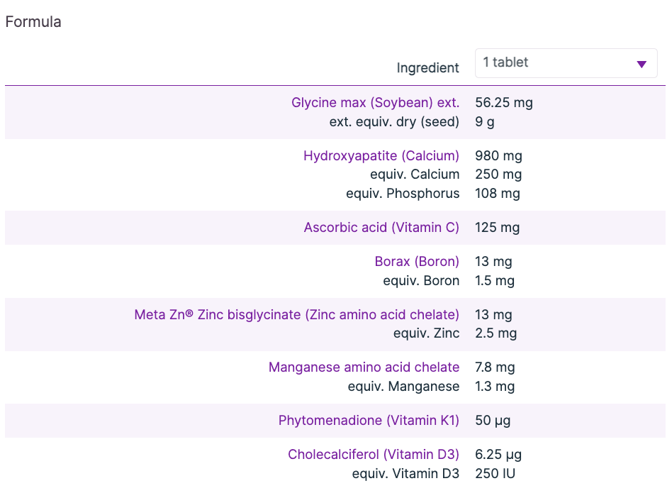 - Support bone integrity and mineralisation in post-menopausal women