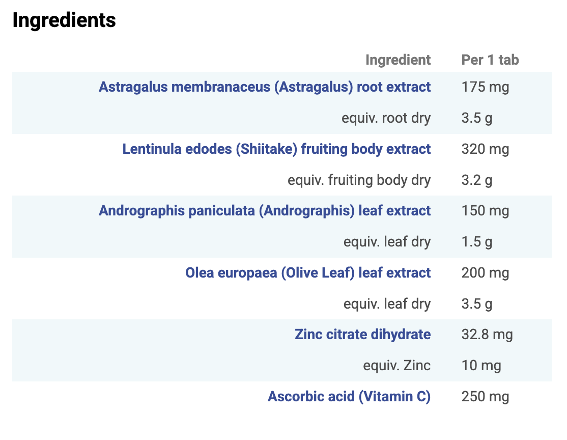 - Andrographis paniculata (Andrographis) leaf extract: 150 mg (equiv. leaf dry 1.5 g)