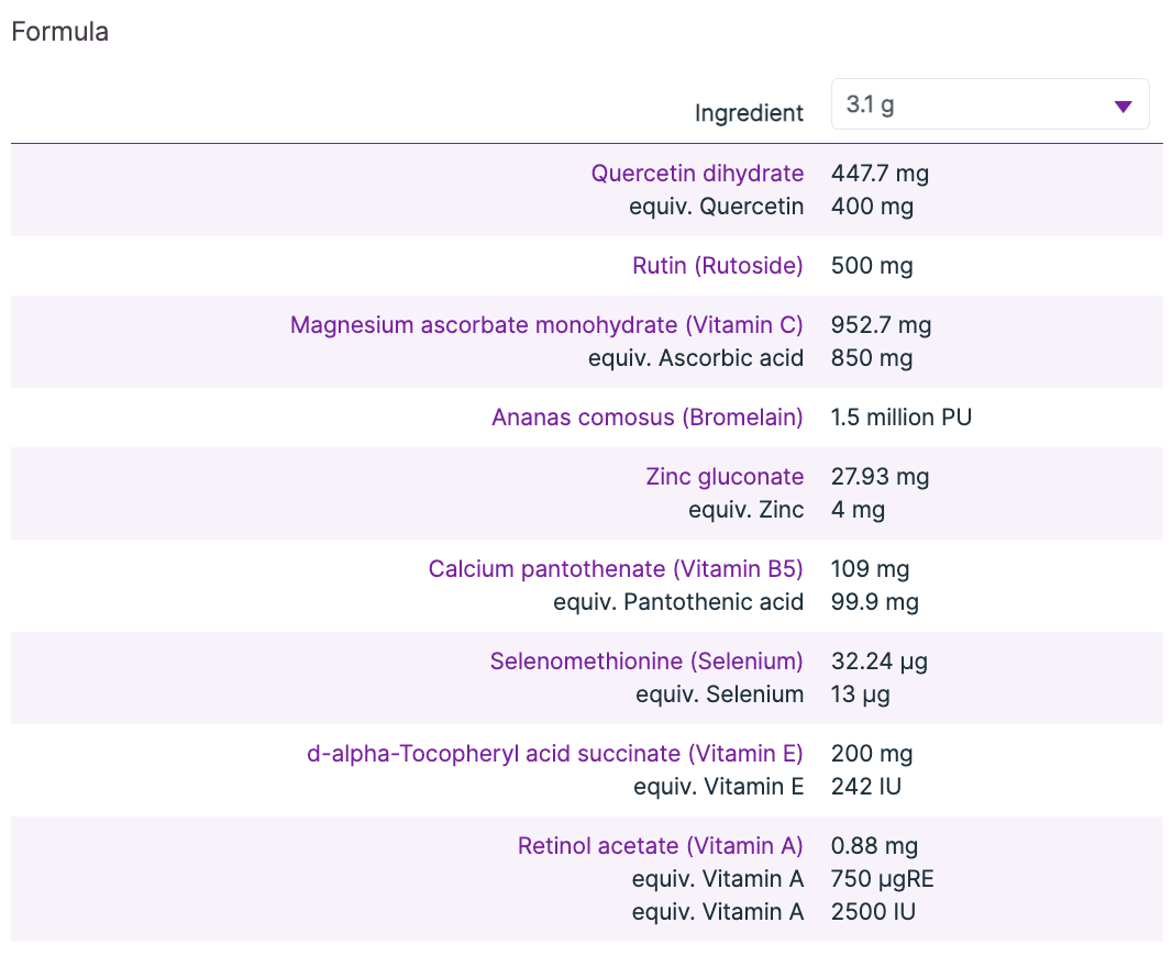 Formula (per 3.1 g)